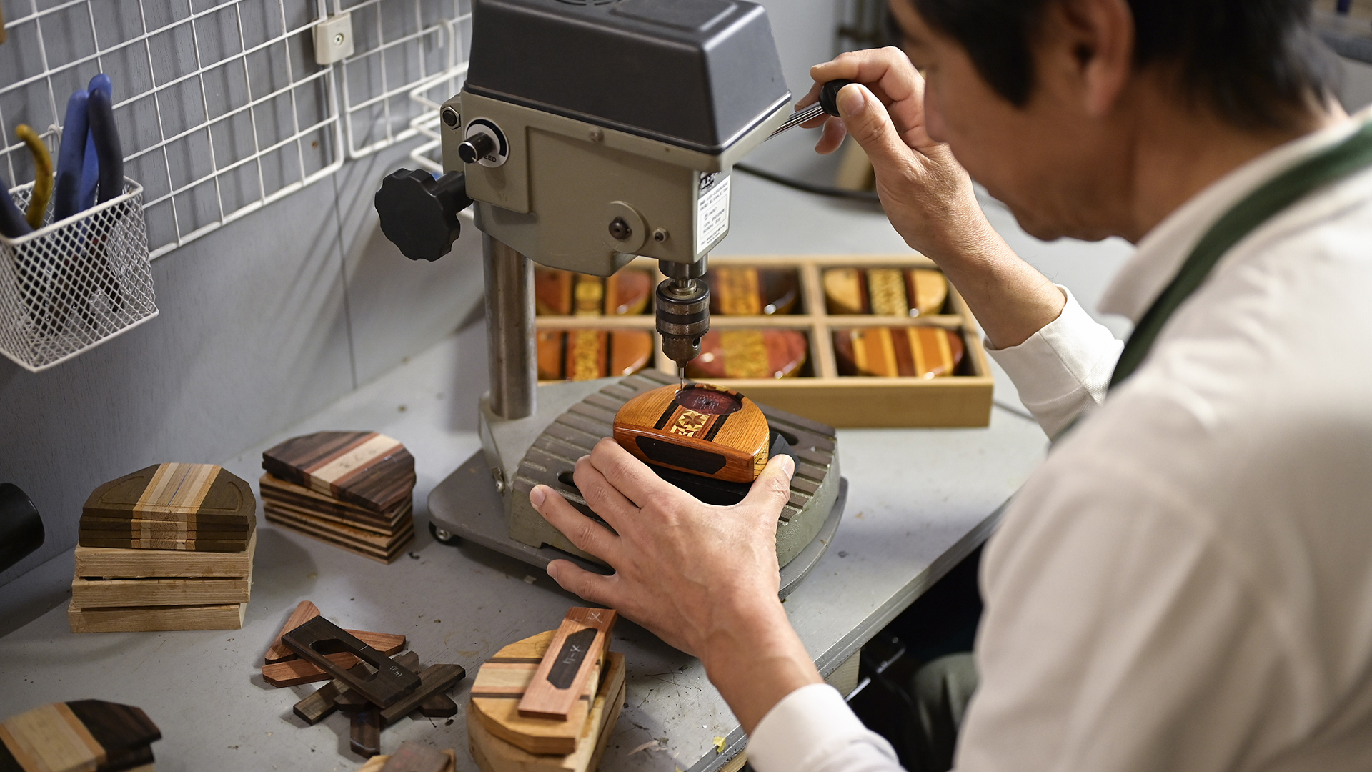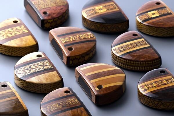 箱根伝統工芸士作の寄木細工を使用した装飾を施し、味わい深いパターを一台ずつハンドメイドで製作しています。