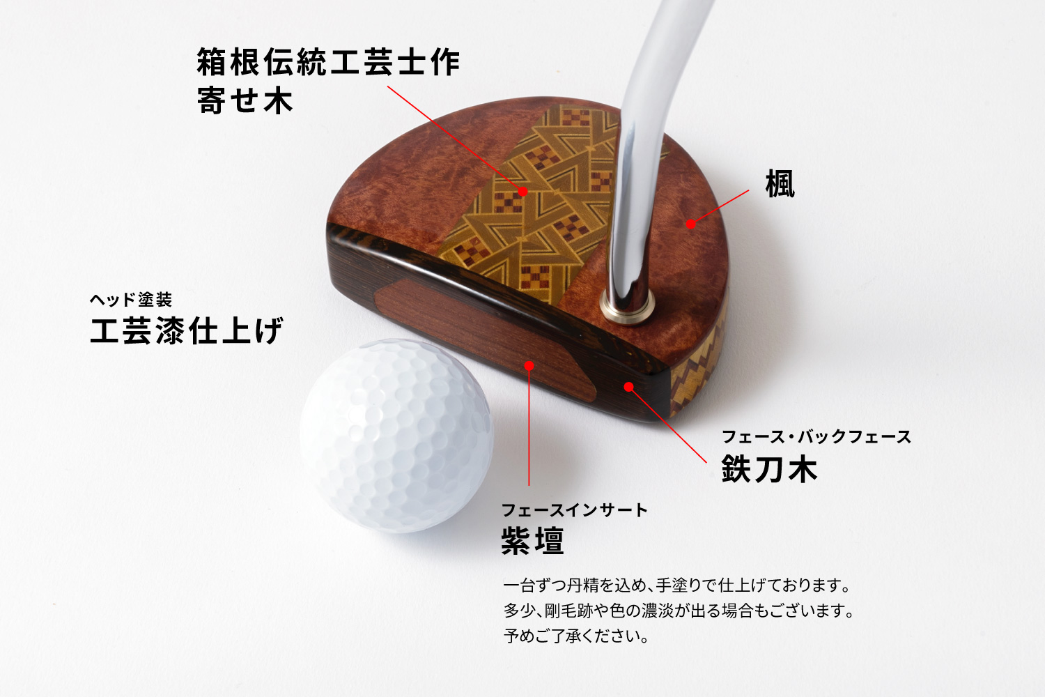- 木製パターはラウンドに耐えれるよう設計・制作はしております。日本ゴルフ協会およびR&A、USGAの裁定に基づく規格に適合しております。 美しさと木の持つ優しさをお楽しみください。